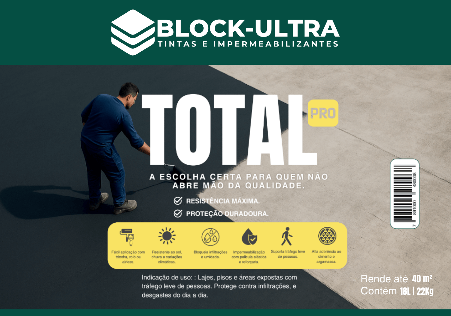 Para tráfego pesado (veículos), aplicar Block-Ultra Alto Tráfego sobre o Total Pro como proteção mecânica final.